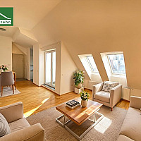Moderne Dachgeschosswohnung mit großer Terrasse nahe Arthaberplatz in ruhiger Seitengasse! Hohe Decken und Traumbad mit Fenster