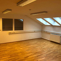 Das großzügige Büro liegt im Dachgeschoss des Hauses und verfügt durch die großzügigen Fensterflächen über eine angenehme Arbeitsatomsphäre.