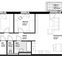 Die Wohnung besteht aus einem Wohnschlafzimmer, einer Küche und einer Dusche. Das WC befindet sich am Gang allerdings unmittelbar neben der Eingangstür und zur…