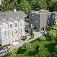 Bei dieser Villa ist dem Architekten eine charmante Symbiose zwischen der alten strassenseitigen Hausfront und der…
