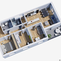 Raumaufteilung: große Wohnküche, 2 Schlafzimmer, Abstellraum, modernes Badezimmer mit Wanne sowie einer…