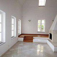 untere Ebene: Vorraum, großer Bürobereich mit offenem Kamin, WC, Abstellraum,