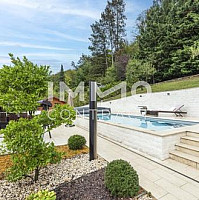 Eindrucksvollen Villa mit rund 333m² Nutzfläche, eingebettet in einen üppig grünen Garten, der absolute Privatsphäre und ein Höchstmaß an Lebensqualität verspricht.
