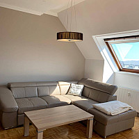Zur Vermietung gelangt eine neuwertige, voll möblierte 2-Zimmer Dachgeschosswohnung mit Garagenstellplatz. Das Schlafzimmer ist in einen ruhigen Innenhof ausgerichtet. Vom Wohnzimmer gelangt man auf…