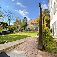 Ein Gartenbüro Top 1 mit zwei Eingang und großem Empfangsraum, im Erdgeschoß, hell, modern, wird in einem geschichtsträchtigen Gebäude mit Lift und Tiefgarage in ruhiger Gartenlage befristet auf…