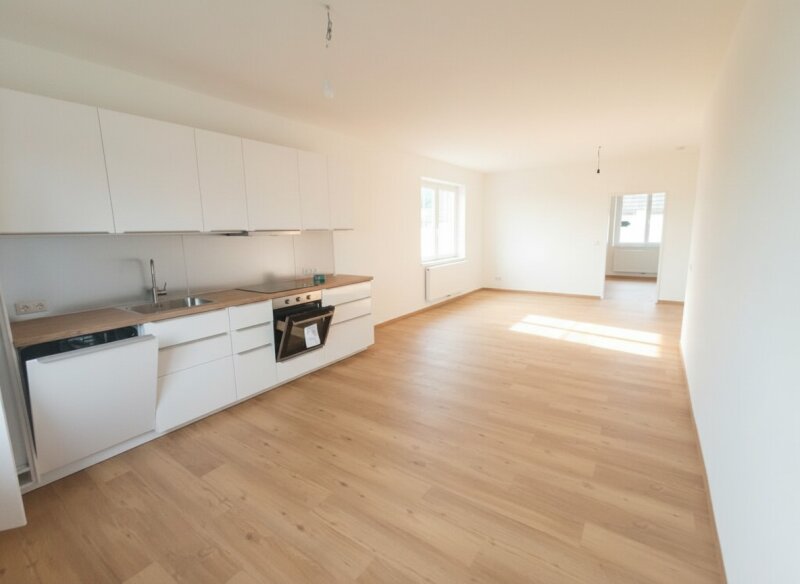 In Maissau steht eine helle und großzügige Wohnung mit rund 86 m² zur Vermietung. Die Wohnung wurde soeben renoviert und wartet nun im Erstbezug auf ihre neuen Mieter. Neben einer modernen Wohnküche mit neuer Küchenzeile bietet sie zwei Schlafzimmer, ein Bad mit Dusche sowie ein separates WC – ideal für Paare oder Familien, die viel Platz und Komfort schätzen. Abgerundet wird das Angebot mit der Nutzung des Gemeinschaftsgartens. Objektdetails Wohnfläche: 85,91 m² 1. DG Erstbezug nach Sanierung Vorraum Badezimmer mit Dusche und zwei Waschbecken Separates WC Großzügige Wohnküche mit neuer Küchenzeile Zwei Schlafzimmer Kosten Monatliche Gesamtbelastung: € 949,32 (inkl. Betriebs- und Heizkostenakonto) Garagenanmietung gegen Aufpreis möglich LageDie Wohnung befindet sich in Maissau in ruhiger Umgebung mit guter Anbindung an die regionale Infrastruktur, die Bushaltestelle mit direkter Anbindung nach Wien befindet sich in unmittelbarer Nähe. Einkaufsmöglichkeiten (Nah und Frisch), Bildungseinrichtungen, Kinderspielplatz sowie öffentliche Verkehrsmittel sind im Ort bzw. in der näheren Umgebung vorhanden. Der Immobilienmakler erklärt, dass er – entgegen dem in der Immobilienwirtschaft üblichen Geschäftsgebrauch des Doppelmaklers – einseitig nur für den Vermieter tätig ist.