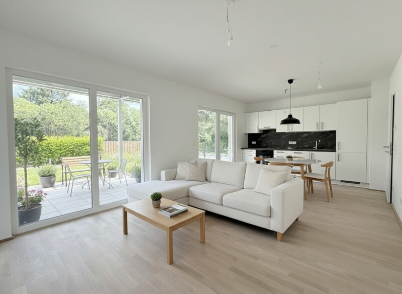 Zum Verkauf gelangt diese perfekt geschnittene Dreizimmerwohnung mit Garten und Terrasse im Erdgeschoss eines sehr geschmackvollen Neubauhauses (Fertigstellung November 2025) in Grün-Ruhelage. Diese hochwertig ausgestattete Wohnung verfügt über einen ca. 75m2 großen Garten (zzgl. 18 m2 Terrasse), welcher von allen drei Zimmern zugänglich ist.Raumaufteilung:- Vorraum- Abstellraum mit Waschmaschinenanschluss- Toilette mit Handwaschbecken- Badezimmer mit Dusche und Doppelhandwaschbecken- Schlafzimmer mit Zugang zum Garten- Wohnküche mit hochwertig ausgestatteter Küche und Zugang zur Terrasse und zum Garten- Schlafzimmer mit Zugang zum GartenAusstattung Wohnung:- Luftwärmepumpe- Fußbodenheizung- hochwertiger Eichenparkettboden- Feinsteinzeugfliesen- Fenster: 3-Scheiben-Isolierverglasung- Terrassentüren: elektrisch bedienbaren RAFF-Stores - Kellerabteil Ausstattung Liegenschaft:- Fahradabstellraum- 2 Gemeinschaftsgärten- Kinderspielplatz- Garage (nicht im KP enthalten) Lage:Dieses schöne Neubauprojekt befindet sich in der Uhligstraße, einer sehr ruhigen und begrünten Straße zwischen Oberlaaer Straße und der Ampferergasse. Der Kurpark Oberlaa ist in ca. 15 Minuten fußläufig zu erreichen.Öffentliche Anbindung:- U-Bahn U1 Neulaa (5 Minuten zu Fuß)- Autobus 17A und N17 (5 Minuten zu Fuß), 16A, 67A, 67BInfrastruktur:- zahlreiche Kindergärten, Bildungseinrichtungen - Geschäfte des täglichen Bedarfs befinden sich ebenfalls in unmittelbarer Nähe Beim angegebenen Kaufpreis handelt es sich um einen Nettopreis für Anleger, für Selbstnutzer kommen 11 % Umsatzsteuer hinzu.