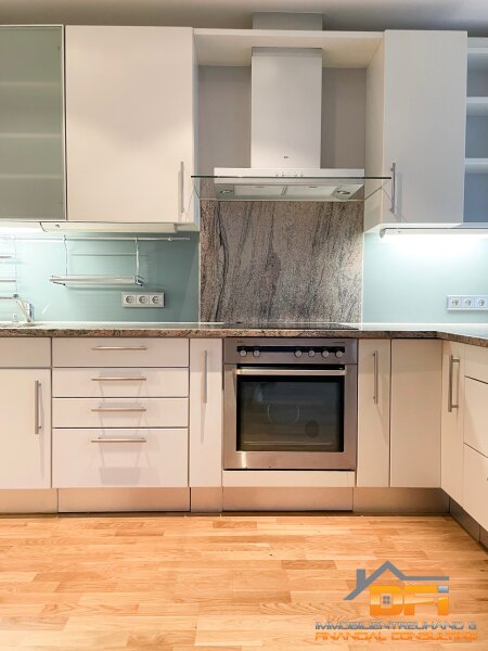 Küche: Die DAN-Einbauküche mit wunderschöner Stein-Arbeitsplatte verfügt über alle notwendigen Einbaugeräte (inkl. Geschirrspüler) und bereits in der Miete inkludiert. Im Küchenbereich sind moderne Fliesen verlegt.
