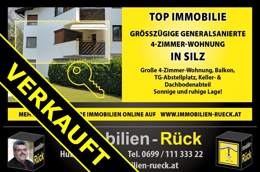 Die zum Verkauf angebotene generalsanierte - (08/2020) - und großzügige ca. 108,86 m2 große 4-Zimmer-Wohnung - (Top W 3 B 6) - Süd-/West-/Nordausrichtung - (Bescheid - Benützungsbewilligung - 10.09.1985) - befindet sich im Gemeindegebiet von Silz, in sonniger und ruhiger Lage.