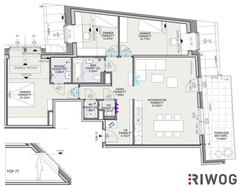 - 78 Eigentumswohnungen und 2 Ateliers/Büro/Ordination