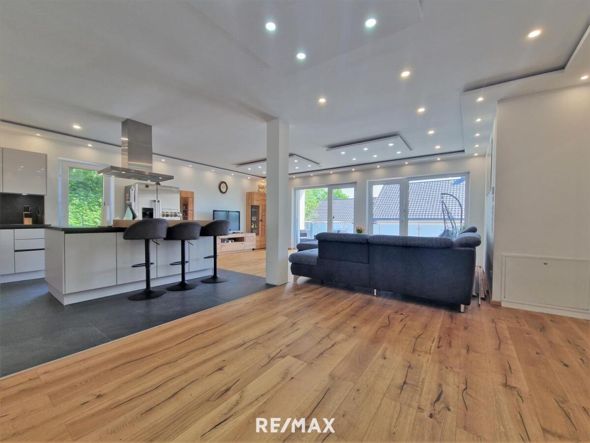 Hochwertige 5.Zi.-Gartenwohnung (ca. 182m²) in Vöcklamarkt/Pfaffing zu verkaufen. Die gegenständliche Liegenschaft befindet sich in ruhiger Siedlungslage am Hang gelegen und wurde 2021 in Massivbauweise fertiggestellt. Die Wohnnutzfläche von ca. 182m² verteilt sich auf zwei Ebenen. Im Erdgeschoss finden sich ein großzügiger Vorraum, ein Abstellraum, ein Badezimmer mit Badewanne und Dusche, zwei Kinderzimmer sowie ein Elternschlafzimmer mit En-Suite Badezimmer vor. Von zwei Schlafräumen hat man einen direkten Zugang zur Terrasse sowie dem sonnigen Garten. Im Obergeschoss erwarten Sie ein Gäste-WC, ein zusätzliches Zimmer mit ca. 16,38m² sowie der große Wohn- und Essbereich mit rund 53,6m² und moderner Einbauküche. Von dort erreichen Sie den geräumigen Balkon (ca. 24,73m²) sowie die Terrasse mit rund 19,59m², welche für eine Verbauung als Wintergarten vorbereitet wurde. Zwei PKW Abstellplätze sowie ein Kellerabteil runden dieses attraktive Angebot ab.