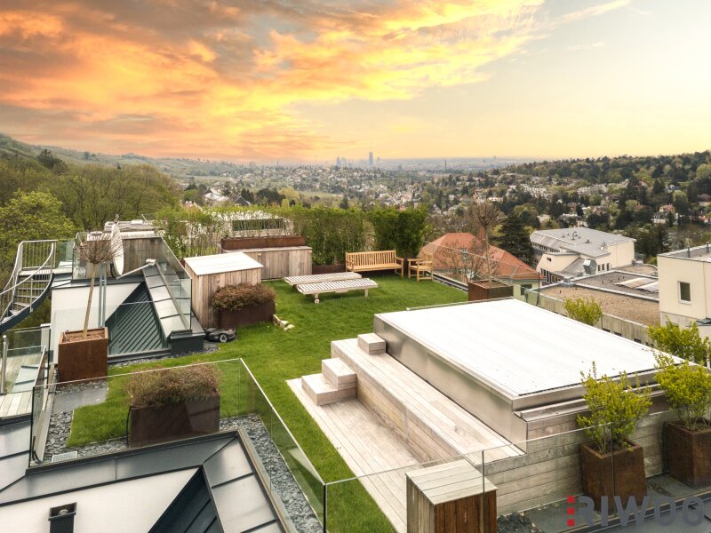 - Begrünter Dachgarten mit beheizbarem Pool und traumhaftem Stadt- und Fernblick