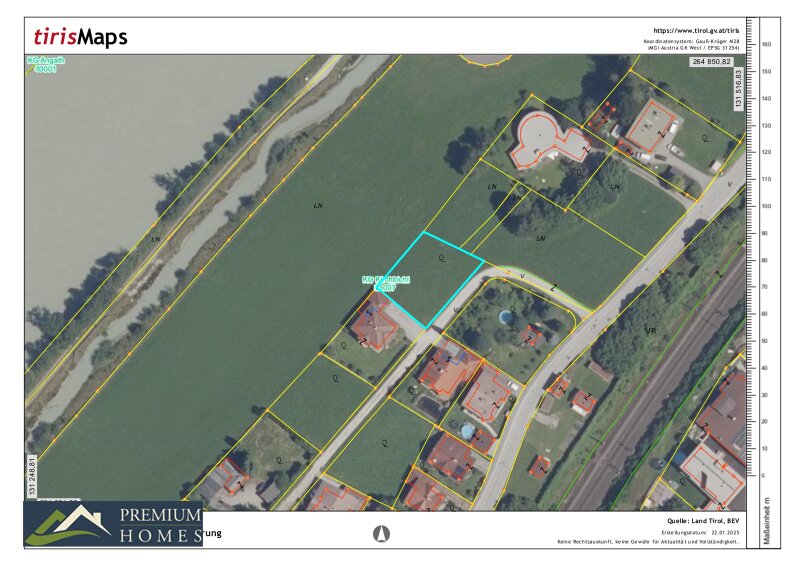 Im beiliegenden Auszug aus der digitalen Katastermappe vom Land Tirol (Tiris) ist die Lage der betreffenden Grundparzelle ersichtlich.