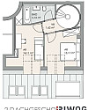 Aktuell hat die Wohnung ein Zimmer, leicht lässt sich jedoch eine Trennwand montieren und somit ein zweites Zimmer realisieren. Dies wurde bereits erfolgreich bei einer gleichen Wohnung im Haus gemacht und diese Wohnung wurde dann (01/2025) für einen HMZ (zzgl. BK & USt.) idH von €764,62 vermietet.