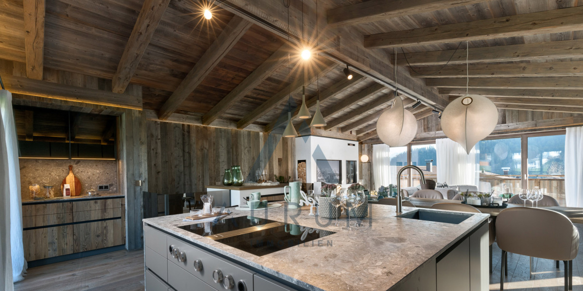 Dieses im Stile eines alten Tiroler Bauernhofes gebautes Chalet fügt sich perfekt in die Bauarchitektur der Region und in die umliegende Naturlandschaft ein. Das Chalet ist hochwertigst ausgestattet und wird komplett möbliert verkauft.