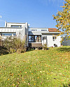 Das Gebäude weist ein Satteldach mit Gauben auf. Ebenso verfügt es über 2-Scheiben-Kunststofffenster.