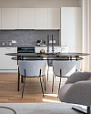 - Parkettböden in Eiche, großformatiges Feinsteinzeug (60×60 cm) in Sanitärräumen