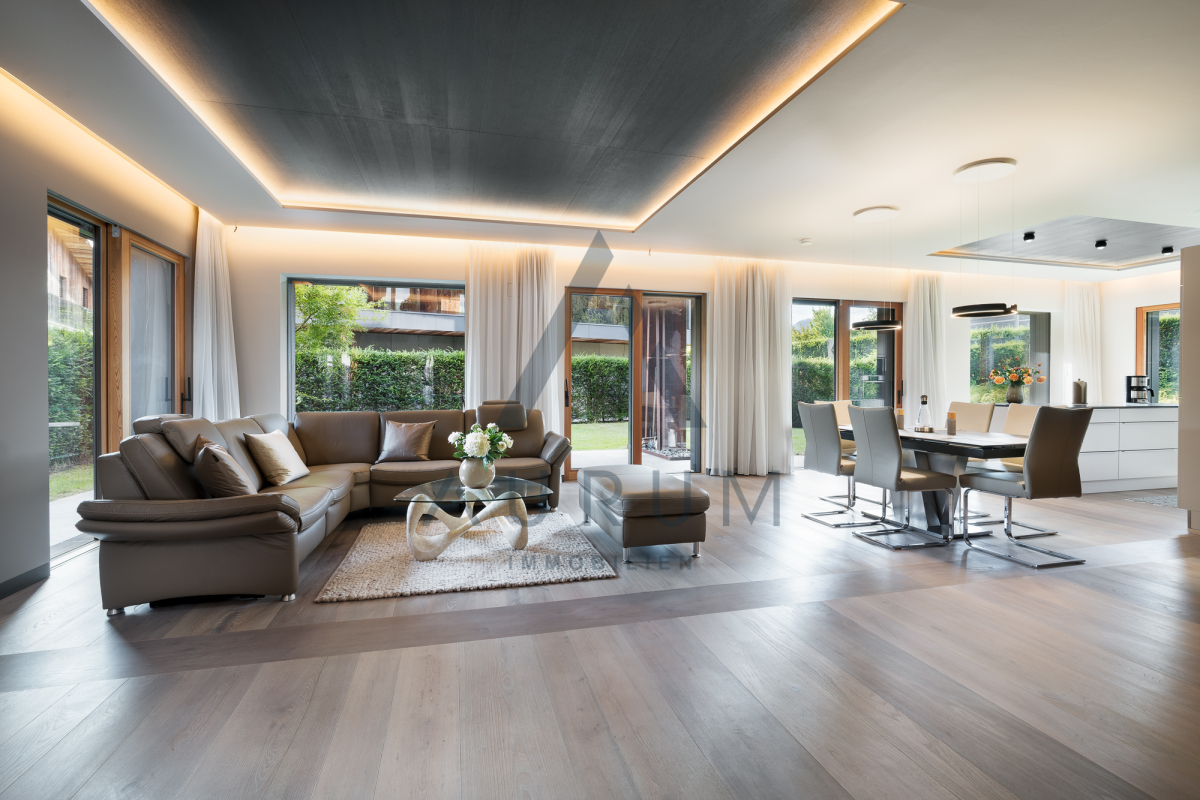 Diese moderne und edel ausgestattete Gartenwohnung befindet sich in zentrumsnaher Lage von Kirchberg mit Blick auf die umliegende Bergwelt. Die Wohnung verfügt über einen großzügigen Wohn-/Essbereich mit vollausgestatteter Küche und direktem Zugang zum ca. 400 m² großen Garten mit umliegenden, großzügigen Terrassenflächen.