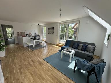 Zur Miete steht eine freifinanzierte 3-Zimmer-Wohnung im 1. Dachgeschoss mit ca. 72 m² Wohnfläche und ca. 10 m² süd-ostseitige Terrasse.