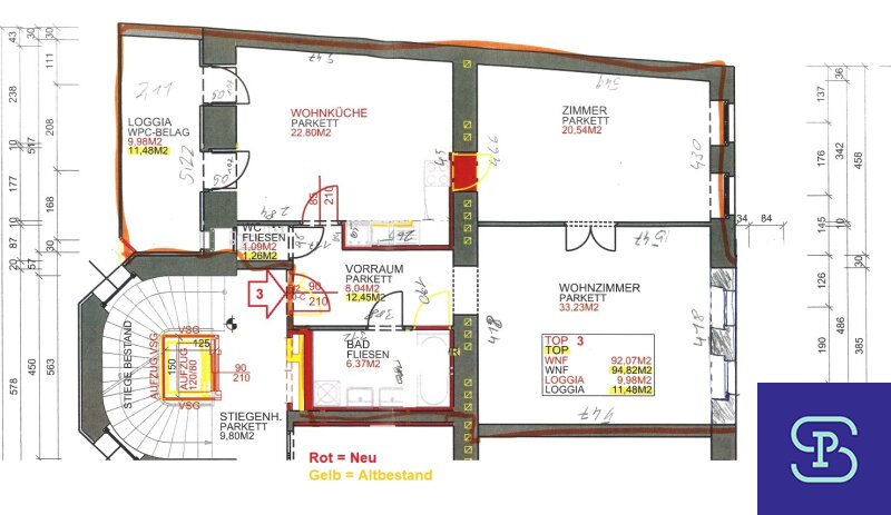 Provisionsfrei: Unbefristeter 98m² Altbau mit 11m² Süd-Loggia und Einbauküche - 1070 Wien!