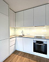 -Wohnküche mit Panoramafenstern und Zugang zur Loggia