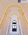 Im Dachgeschoss befinden sich 3 getrennt begehbare Schlafzimmer, wobei das größte Zimmer Zugang zum hofseitigen Balkon hat, 2 Badezimmer mit Dusche bzw. Badewanne und jeweils einem WC, sowie ein geräumiger Schrankraum.