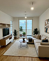Der loftartige Wohnbereich besticht durch großzügige Fensterfronten, die den Raum mit Licht durchfluten und den Blick in den begrünten Innenhof öffnen – ruhig, privat und elegant. Die moderne Küche fügt sich harmonisch in das offene Wohnkonzept ein, ergänzt durch ein stilvolles Badezimmer und ein separates WC.