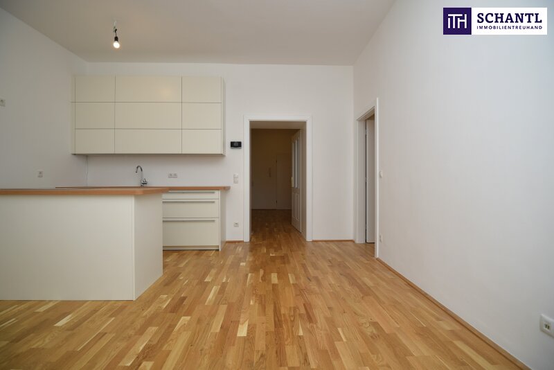 Über einen einladenden und geräumigen Vorraum gelangen Sie in die neu gestaltete Wohnküche sowie das hofseitig gelegene Schlafzimmer. Das geschmackvolle Badezimmer mit Dusche und Waschmaschinenanschluss, der praktische Abstellraum sowie das WC befinden sich gleich im Eingangsbereich. Das zweite Schlafzimmer begehen Sie über die Wohnküche. Somit bietet sich die Wohnung ideal Paaren mit dem Wunsch nach mehr Platz, einer Familie mit Kind aber auch einer Wohngemeinschaft an. Ein Highlight ist der eigene PKW-Stellplatz, welcher exklusiv für Sie zur Verfügung steht! Hier hat die lästige Parkplatzsuche endlich ein Ende gefunden!