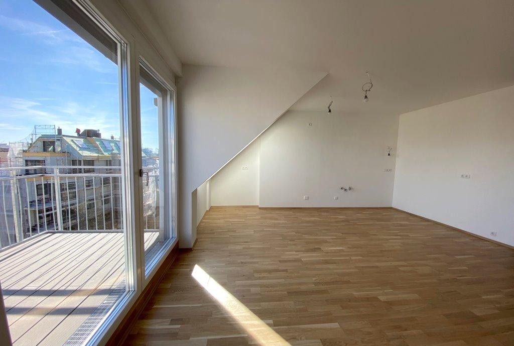 Die 2 Zimmer Dachgeschosswohnung in der Stadlauer Straße bietet alles, was modernes Wohnen bieten soll.