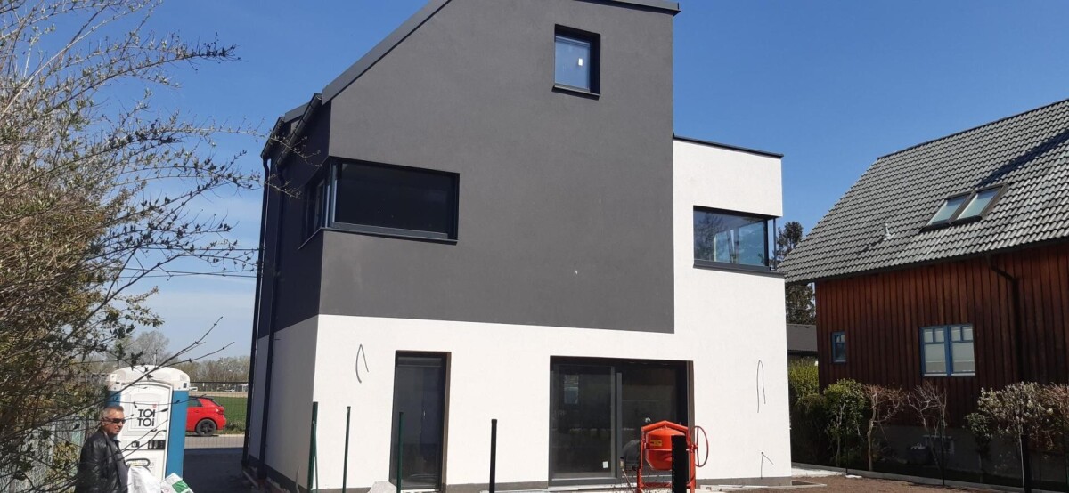 • Ziegelmassiv, Dichtbetonkeller, Estrich, Innenputz, Fassade, Elektrik und Wasserinstallation