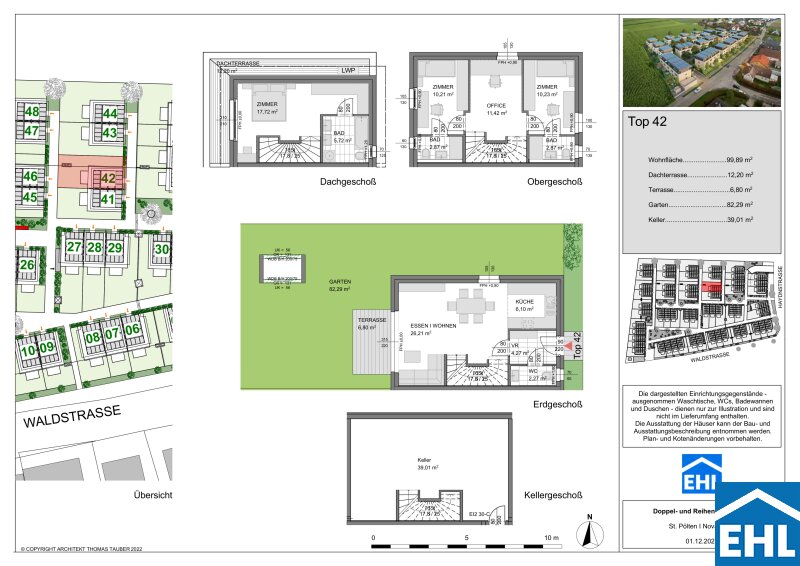 Die Häuser verfügen über drei Etagen, wobei in den meisten Einheiten ein zusätzliches Kellergeschoß ausgeführt wird. Die Wohnflächen variieren zwischen 99 und 109 m² und bieten mit 4 Zimmern ausreichend Platz und Komfort für eine Familie. Großzügige Freiflächen in Form von Gärten, Terrassen und Dachterrassen laden zum Entspannen und Genießen ein. Hier können Sie Ihren grünen Daumen entfalten und entspannte, gesellige Stunden mit Freunden und Familie erleben. Für jede Wohneinheit sind zudem 2 Tiefgaragenplätze vorgesehen, die bequem erreichbar und schon im Kaufpreis inbegriffen sind.