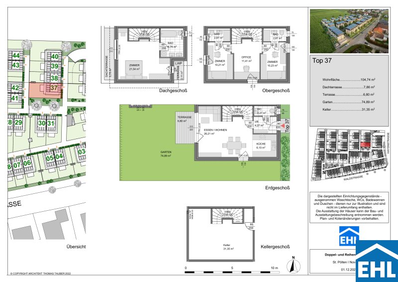 Die Häuser verfügen über drei Etagen, wobei in den meisten Einheiten ein zusätzliches Kellergeschoß ausgeführt wird. Die Wohnflächen variieren zwischen 99 und 109 m² und bieten mit 4 Zimmern ausreichend Platz und Komfort für eine Familie. Großzügige Freiflächen in Form von Gärten, Terrassen und Dachterrassen laden zum Entspannen und Genießen ein. Hier können Sie Ihren grünen Daumen entfalten und entspannte, gesellige Stunden mit Freunden und Familie erleben. Für jede Wohneinheit sind zudem 2 Tiefgaragenplätze vorgesehen, die bequem erreichbar und schon im Kaufpreis inbegriffen sind.