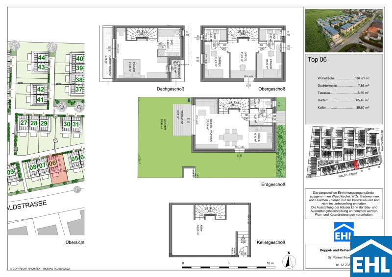 Die Häuser verfügen über drei Etagen, wobei in den meisten Einheiten ein zusätzliches Kellergeschoß ausgeführt wird. Die Wohnflächen variieren zwischen 99 und 109 m² und bieten mit 4 Zimmern ausreichend Platz und Komfort für eine Familie. Großzügige Freiflächen in Form von Gärten, Terrassen und Dachterrassen laden zum Entspannen und Genießen ein. Hier können Sie Ihren grünen Daumen entfalten und entspannte, gesellige Stunden mit Freunden und Familie erleben. Für jede Wohneinheit sind zudem 2 Tiefgaragenplätze vorgesehen, die bequem erreichbar und schon im Kaufpreis inbegriffen sind.
