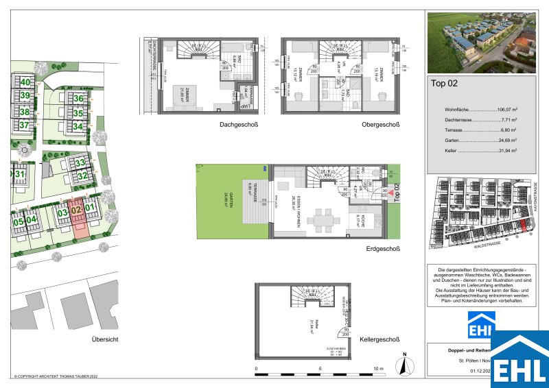 Die Häuser verfügen über drei Etagen, wobei in den meisten Einheiten ein zusätzliches Kellergeschoß ausgeführt wird. Die Wohnflächen variieren zwischen 99 und 109 m² und bieten mit 4 Zimmern ausreichend Platz und Komfort für eine Familie. Großzügige Freiflächen in Form von Gärten, Terrassen und Dachterrassen laden zum Entspannen und Genießen ein. Hier können Sie Ihren grünen Daumen entfalten und entspannte, gesellige Stunden mit Freunden und Familie erleben. Für jede Wohneinheit sind zudem 2 Tiefgaragenplätze vorgesehen, die bequem erreichbar und schon im Kaufpreis inbegriffen sind.