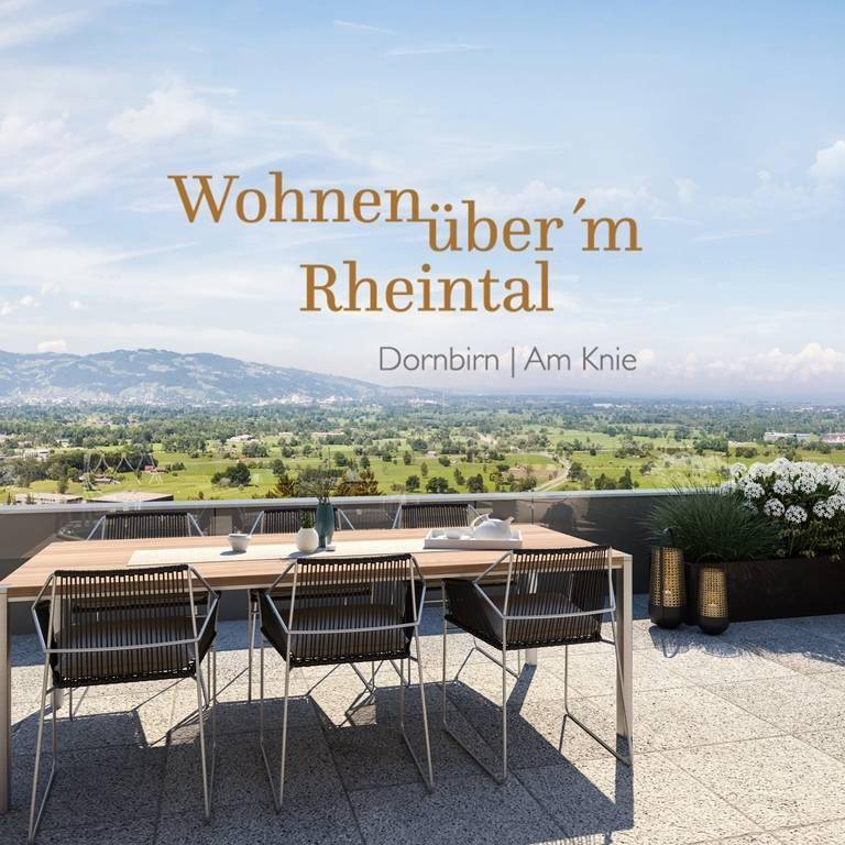 Auf einer Sonnenterrasse in südwestlicher Ausrichtung gelegen, bietet die exklusive Wohnanlage "Wohnen über´m Rheintal" einen beeindruckenden Rundumblick. Die Sicht reicht vom Bodensee bis tief in die Schweizer Berge. In der Nacht liegt das Rheintal als glitzerndes Lichtermeer zu Füßen.Inmitten von viel Grün fügen sich die sechs Mehrfamilienhäuser der Wettbewerbssieger walser+werle architekten harmonisch in die Umgebung ein. Zwischen den modernen, klar strukturierten Häusern mit hochwertiger Holzfassade stehen großzügige Freiflächen zur Verfügung. In zwei Bauetappen entstehen 54 hochwertig ausgestattete Zwei- bis Vier-Zimmer-Eigentumswohnungen mit Tiefgaragen.Die Wohnungen sind mit großzügigen, überdachten Terrassen versehen und erhalten dadurch eine räumliche Erweiterung ins Freie. Aufgrund der sturzlosen Fenster erhalten die Wohnungen viel Tageslicht. Jeder Wohnung ist ein geräumiges Kellerabteil zugeordnet.Lift, Einstellplätze für Fahrräder und Besucherparkplätze sind ebenso selbstverständlich wie barrierefreies Wohnen. Nach einem Freiraumkonzept von Gruber + Haumer Landschaftsarchitektur werden die Außenanlagen familienfreundlich gestaltet. Das Heizsystem ist ressourcenschonend und umweltfreundlich: Erdwärme dient als Energiequelle für die Heizung im Winter und kühlt die Räume im Sommer dank Free Cooling klimaneutral.Die Vorarlberger Bauträger Hinteregger project GmbH und i+R Wohnbau GmbH realisieren die Wohnanlage in zwei Bauetappen. Auf die Fertigstellung von Haus A und Haus B folgen die restlichen vier Häuser in einer zweiten Bauphase.Auch bei Fragen zur Finanzierung steht Ihnen unser Beraterteam unterstützend zur Seite. Infos hier!