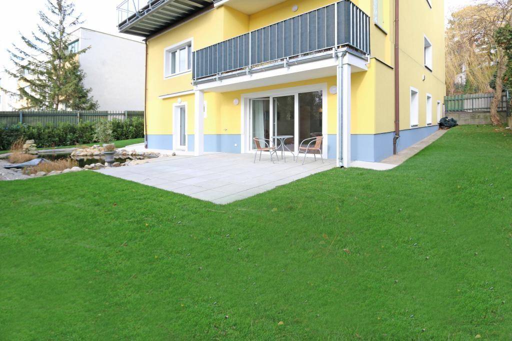 Gartenwohnung in absoluter Ruhelage Veräußert wird eine sehr schöne, helle 3 Zimmer-Wohnung in absoluter Ruhelage, mit Eigengartenanteil und einer wunderschönen Gartenterrasse. Die Wohnung ist direkt über eine Außenstiege zugänglich. Nutzflächen: Wohnfläche.........ca. 108 m² Gartenfläche........ca. 217 m² Gartenterrasse.....ca. 44 m² Biotop.................ca. 19 m² Raumaufteilung: • Vorraum (ca. 8,9 m2) • 2 Zimmer • Wohnküche (ca. 45,6 m2) mit Zugang zur Gartenterrasse • Badezimmer mit Badewanne und Toilette • Duschraum mit Toilette • Abstellraum • Kellerabteil (im Gartenbereich angebaut) Ein PKW-Stellplatz kann optional um € 18.000 erworben werden. Die von uns gemachten Angaben beruhen auf Informationen und Mitteilungen durch Dritte, insbesondere durch die Verkäufer und sind daher ohne Gewähr. ** ---------- ** Garden-Apartment in an absolutely silent area For sale: a beautiful and very bright apartment with 3 rooms and its own garden area. Accessible directly via outside stairs Useable areas: living space.........approx. 108 m² garden.................approx. 217 m² garden terrace......approx. 44 m² biotope.................approx. 19 m² Room layout: • entrance (8,9 m²) • 2 rooms • bathroom with tub and toilet • shower room with toilet • storage room • basement (was built in the garden 1,47 m²) A parking space can optionally be purchased for € 18,000. All information is without guarantee and based exclusively on information which was made available to us by the owner; we do not accept any responsibility for the correctness, completeness and up-to-dateness of this information.