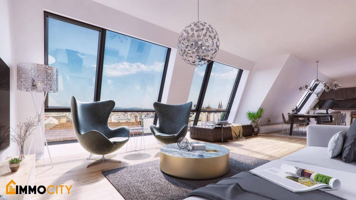 1. Atemberaubendes Wohnen in 1070 Wien Neubau!Ihre neue Wohnung, mit einer gesamten Wohnfläche von ca. 116,59 m² und einer Terrasse von ca. 25,84 m², im Dachgeschoss auf zwei Etagen wird Sie ausnahmslos überzeugen und Ihre Aufmerksamkeit anregen. Die 1. Ebene beinhaltet einen umfassenden Vorraum, ein elegantes Badezimmer (Dusche, WC) ein zweites Badezimmer (Fenster, Badewanne, Doppelwaschbecken und Toilette) und 3 Schlafräume, welche über viel Raum und Licht verfügen und darauf warten, aufgefrischt zu werden um hier wunderbare Nächte und schöne Träume erleben zu können.Die 2. Ebene verfügt über eine ca. 59m2 große exklusive Wohnküche, welche bei einem inklusiven wunderbaren Panoramablick ein einmaliges Kocherlebnis verspricht, einen Abstellraum und der Zugang zu der hofseitigen Sonnenterrasse. Genießen Sie täglich den einzigartigen Ausblick über die belebte Stadt Wien.Stauraum in Form eines eigenen Kellerabteils steht Ihnen zusätzlich zur Verfügung.2. LageRomantisch, anregend und trendig ist Ihre neue Adresse im 7. Bezirk, welche so einiges zu bieten hat und alles erfüllt, was Sie sich unter einer urbanen Lebensqualität vorstellen!Diverse Restaurants, Bars und Cafés befinden sich in unmittelbarer Nähe. Wenige Gehminuten entfernt finden Sie die belebte Mariahilfer Straße, welche für ein spannendes Shopping-Erlebnis sorgt. Gemütliche Seitenstraßen, das berühmte Museumsquartier, die für den berühmten Flohmarkt bekannte Neubaugasse, erreichen Sie auch in Kürze. Verpassen Sie nicht die romantischen Gassen am Spittelberg – der populärste und bekannteste Kunst-Weihnachtsmarkt rund um die Weihnachtszeit oder in der Stadthalle die Konzerte das Eislaufen und viele weiteren Angebote. Auch erholsame Grünanlagen wie z.B. der Volks- und Burggarten, Josef-Strauß-Park, Hamerlingpark oder die Wiener Innenstadt erreichen Sie entspannt in einigen Minuten mit dem Fahrrad.Medizinische Hilfe sowie öffentliche und private Bildungseinrichtungen runden das Angebot ab.Auch die öffentlichen Verkehrsanbindungen sind in nur wenigen Minuten zu erreichen.Straßenbahn: 6, 18, 46, 5Autobus: 48AU-Bahn: U63.HighlightsFilmreife PanoramaaussichtAußenjalousien (Rollladen)KlimageräteMechanische Be- und EntlüftungSonnenschutzExklusive AusstattungSicherheitseingangstürAbstell- und FahrradraumAusgezeichnete Infrastruktur4. Energieeffizientes WohnenHWB: 41,76 kWh/m²a (Klasse B)fGEE: 1,05 (Klasse C)***Finanzierung***Sie suchen nach einer optimalen Finanzierung für dieses Objekt? Sprechen Sie uns an, wir helfen gerne!KostenEUR 970.000,- Provision: 3% zzgl. MwSt. Grunderwerbsteuer: 3,5 % Eintragungsgebühr: 1,1% Kaufvertragserrichtung & Treuhandabwicklung: bei Barzahlung 2% bei Fremdfinanzierung 2,5% zzgl. MWSt.Ihr Ansprechpartner: Herr Ehsan Karimian || Tel.: 0676 46 46 646 || ek@immo-city.at || Deutsch, English, Farsi• (Mo – So, 9:00 – 21:00 Uhr)Immocity Real Estate GmbHWir weisen darauf hin, dass zwischen dem Vermittler und dem Auftraggeber ein wirtschaftliches Naheverhältnis besteht.Infrastruktur / EntfernungenGesundheit Arzt <500m Apotheke <500m Krankenhaus <1.500m Klinik <1.000m Kinder & Schulen Schule <500m Kindergarten <500m Universität <1.000m Höhere Schule <1.000m Nahversorgung Supermarkt <500m Bäckerei <500m Einkaufszentrum <500m Sonstige Bank <500m Geldautomat <500m Post <500m Polizei <500m Verkehr Bus <500m Straßenbahn <500m U-Bahn <500m Bahnhof <500m Autobahnanschluss <4.500m Angaben Entfernung Luftlinie / Quelle: OpenStreetMap