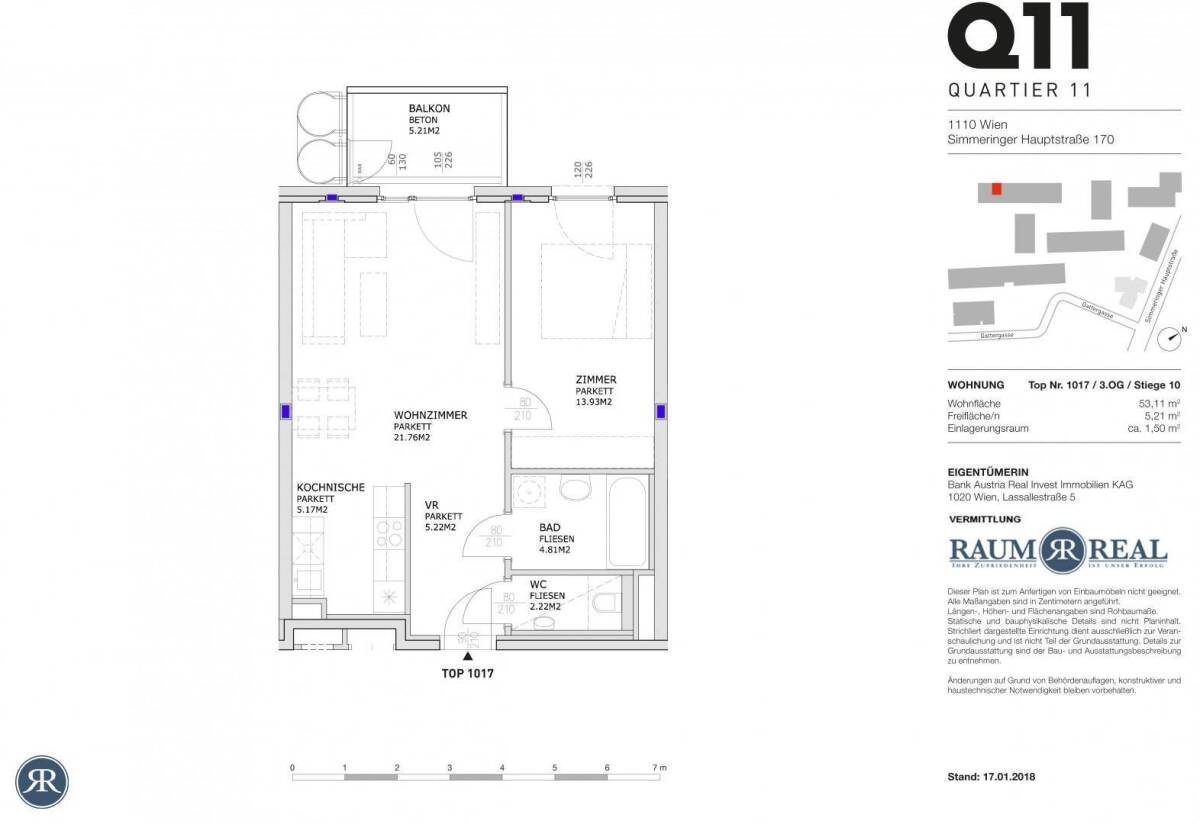 Die Wohnungen im QUARTIER 11 zeichnen sich durch eine Vielfalt an unterschiedlichen Grundrissen und Größen von 43 bis 100 m2 aus. Wählen Sie das Wohnungslayout, das am besten zu Ihnen und Ihrer Zukunftsplanung passt. Ob 1-, 2-, 3- oder 4-Zimmer-Wohnung – alle Wohnbereiche sind bis ins Detail geplant. Jede Wohnung verfügt entweder über Garten, Balkon, Loggia oder Terrasse. Wir haben alle Wohnungen mit modernsten Maßküchen inklusive Geräten, Parkettböden und alle Fenster mit Außenjalousien ausgestattet. Und das Beste ist: alle Wohnungen sind gekühlt.Detaillierte Infos über alle freien Wohnungen sowie Pläne finden Sie unter www.QUARTIER11.at.!!! Alle Innenaufnahmen sind Beispielfotos aus Wohnungen in diesem Projekt.Das Wohnareal QUARTIER 11 besteht aus 8 freistehenden Gebäuden und einem 10-geschoßigen Turm mit markanter Fassade. Großzügige Grünflächen und freundlich gestaltete Plätze verleihen diesem Wohnprojekt ein ganz besonderes Flair in Ruhelage. Die moderne Architektur kombiniert hier attraktives Design und angenehmes Wohngefühl für Ihr neues Zuhause.Das innovative Energiesystem KlimaLoop® mit seiner integrierten Deckenkühlung für alle Wohnungen setzt dabei neue Standards und sorgt für niedrige Energiekosten.Mietdauer: 10 Jahre befristet Kaution: 3 Bruttomonatsmieten Provision: 2 Monatsmieten + 20 % Ust. Garage: € 72,--/Monat (Kaution für Garage: € 220,--)Schicken Sie uns bitte eine Anfrage per Mail. Es werden nur Anfragen mit kompletter Namensnennung (Vor- und Zuname) sowie Telefonnummer beantwortet.Nach Erhalt Ihrer Anfrage übermitteln wir Ihnen das Angebot und können dann gerne eine Besichtigung vereinbaren.Bitte beachten Sie, dass bei Wohnungen, die erst frei werden, eine Besichtigung nur in Abstimmung mit dem/der derzeitigen Mieter/in stattfinden kann.Infrastruktur / EntfernungenGesundheit Arzt <2.000m Apotheke <500m Klinik <4.500m Krankenhaus <4.000m Kinder & Schulen Schule <500m Kindergarten <500m Universität <3.000m Höhere Schule <3.500m Nahversorgung Supermarkt <500m Bäckerei <1.000m Einkaufszentrum <1.500m Sonstige Bank <1.000m Geldautomat <1.000m Post <1.000m Polizei <500m Verkehr Bus <500m U-Bahn <1.000m Straßenbahn <500m Bahnhof <1.000m Autobahnanschluss <2.500m Angaben Entfernung Luftlinie / Quelle: OpenStreetMap
