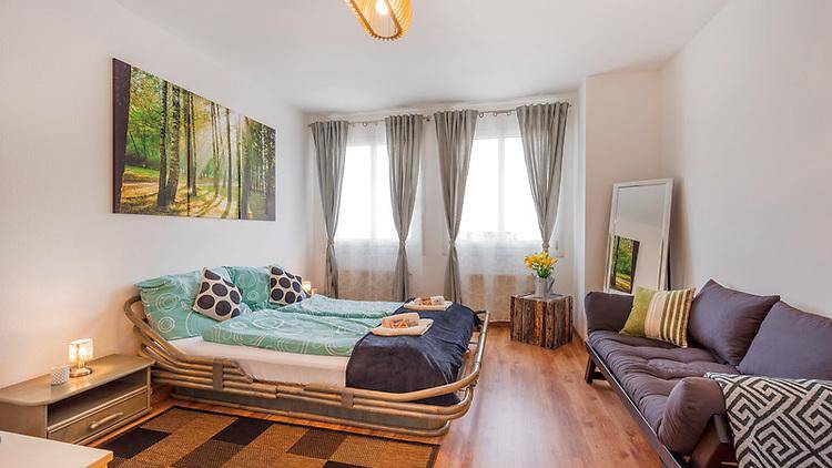 MIETDAUER ab 1. März 2021 (mind. 2 Monate) Allgemein • 2 Zimmer, 49m², getrennt begehbar • TOP-Lage: 10 Min. zum Schloss Schönbrunn • Kostenfreier Parkplatz auf Anfrage • Ideale öffentliche Anbindung: U4/U6 U-Bahn in 100 Meter • Voll ausgestattet 49m², im 3. Stock mit Lift, 1 Schlafzimmer, in Neubau Maximal 5 Personen, Familien mit Kindern willkommen, Rauchen in der Wohnung nicht erlaubt Ergänzende Bemerkungen zur Miete Inkl. Heizung, Strom, Wasser, Internet, TV (inkl. Anschluss und Abo) WIN-PREIS Der Anbieter dieses Objekts vermietet zu Selbstkosten (resp. zum Marktpreis bei Eigentümern). Möblierung funktional 1 Doppelbett, 2 Schlafsofas Ausstattung TV (inkl. Anschluss und Abo), Internet Waschmaschine & Wäschetrockner Küche Kücheneinrichtung für 5 Personen offene Küche, Geschirrspüler, Mikrowelle, Glaskeramikherd, Kaffeemaschine Bad / Dusche / WC 1 Dusche & WC Umgebung städtische Umgebung, Einkaufsmöglichkeiten in der Nähe Öffentlicher Verkehr 1 Gehminuten bis ÖV-Station 100 Meter Auto 1 eigener Parkplatz Stichworte befristet aufZeit temporär vorübergehend WohnenAufZeit WAZ Zwischenmiete Kurzzeit Kurzzeitmiete Kurzzeitwohnen Monteurwohnungen Übergangswohnung ********************************************** 2 ROOM APARTMENT IN WIEN - 12. BEZIRK - MEIDLING, FURNISHED RENTAL PERIOD from March 1, 2021 (min. 2 months) General information • 2 rooms, 49m², separately accessible • TOP location: 10 minutes to Schönbrunn Palace • Free parking on request • Ideal public connection: U4 / U6 subway in 100 meters • Fully equiped 49m², on 3. floor with elevator, 1 bedroom, in new building 5 persons max., families with children welcome, smoking in apartment not allowed Complementary remarks on the rent Heating, electricity, water, internet, TV (incl. connection and subscription) incl. WIN PRICE The provider offering this property is renting out at his own cost (resp. at market price if he is an owner). Furniture functional 1 double bed, 2 sofa beds Equipment TV (incl. connection and subscription), internet washing machine & tumbler Kitchen Kitchen equipped for 5 persons open kitchen area, dishwasher, microwave, ceramic stove top, coffee maker Bath / Shower / Toilet 1 shower & toilet Environment urban area, shopping facilities nearby Public transport 1 min. to walk to public transport station 100 Meter Car 1 private parking space Keywords shortterm medium term expat relocation business HR sabbatical workation digitalnomad