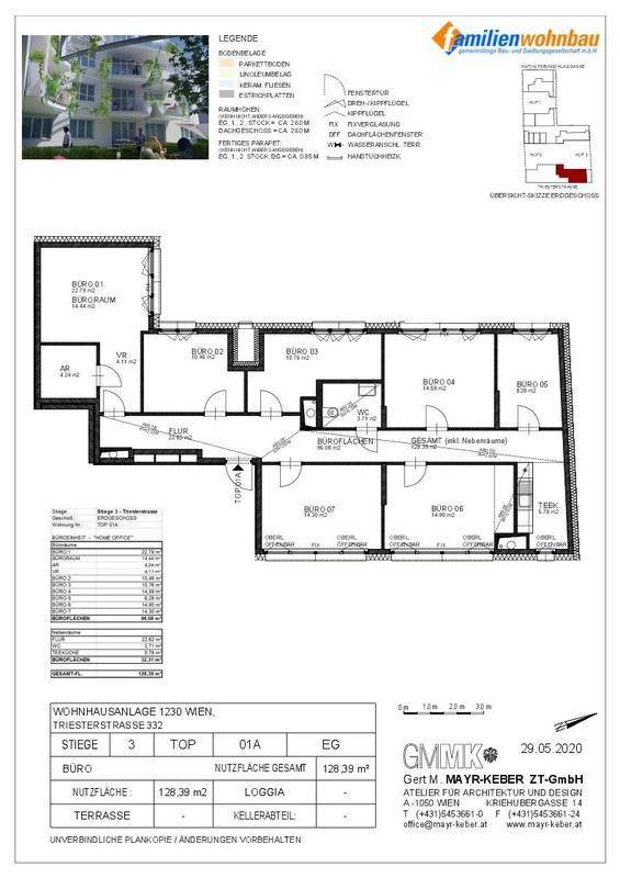 Home Office 6 in der Stiege 3 im Erdgeschoß mit 14,90 m² Kosten: pauschal Miete: € 312,00 (inkl. Strom, Warmwasser, Heizung und Reinigung) Kaution 6 Brutto-Monatsmieten: € 1.872,00 Die Home Office können vielseitig genutzt werden (Büro, Atelier, Stauraum....) . Das Mietverhälnis ist unbefristet und kann unter Einhaltung einer dreimonatigen Kündigungsfrist gekündigt werden.: AUSSTATTUNG: Teeküche: Heizung: Deckenstrahlheizung Bodenbelag: Linoleum mit Sockelleiste Bezug: Voraussichtliche Übergabe: Frühjahr 2021 Energiedaten: Energieausweis: liegt vor HWB: 23,79