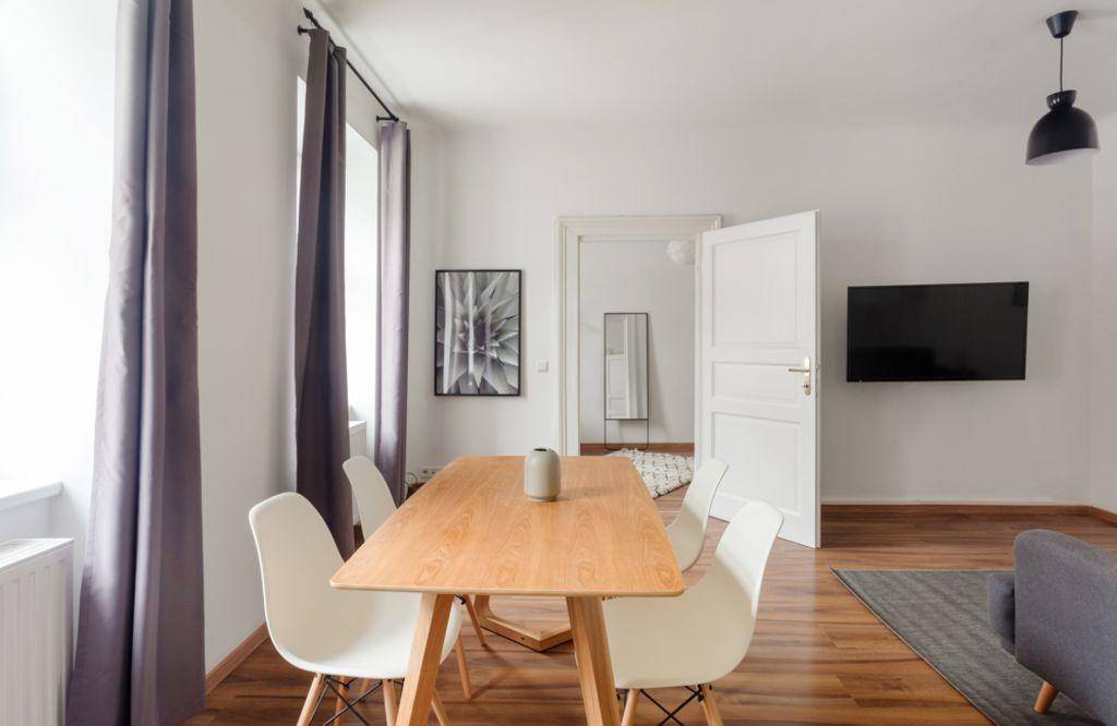 Herzlich Willkommen! Bei uns wohnen Sie in liebevoll eingerichteten Apartments, anstelle von unpersönlichen Hotelzimmern oder fremden Privatwohnungen. Unser Apartment kombiniert die Qualitätsansprüche eines Hotels sowie die Gemütlichkeit & Persönlichkeit einer eigenen Wohnung. Die hochwertige und stylische Ausstattung macht sowohl kurze wie auch lange Aufenthalte zu einer unvergesslichen Erfahrung.vDie 50 m² große Wohnung ist vollmöbliert und verfügt über eine hochwertige und moderne Ausstattung. Hohe Decken sorgen für eine helle und gemütliche Wohnatmosphäre. Guter Schlaf liegt uns am Herzen, weshalb bei der Einrichtung besonderes Augenmerk auf die Qualität der Boxspringbetten geachtet wurde. Schnelles und kostenfreies WLAN ist verfügbar und in der vollausgestatten Küche können Sie sich einen frischen Kaffee oder leckere Gerichte zubereiten. Hierzu stehen Cerankochfeld, Mikrowelle, Kühlschrank und ein Geschirrspüler zur Verfügung. Außerdem verfügt die Unterkunft über einen Smart-TV und selbstverständlich ein eigenes Bad mit Dusche.In den Mietkosten sind die Nebenkosten, Heizung, Internet und TV bereits enthalten. Bitte beachten Sie: Der Check-in ist ab 16 Uhr möglich, der Check-out muss vor 11 Uhr erfolgen. Bitte beachte: damit Du Deinen persönlichen Zugangscode erhältst, musst Du unseren Online Check-in durchführen. Den Link hierzu und eine Anleitung bekommst Du nach Deiner Buchung per E-Mail. Energieausweis Dieses Gebäude unterliegt nicht den Anforderungen der EnEV.