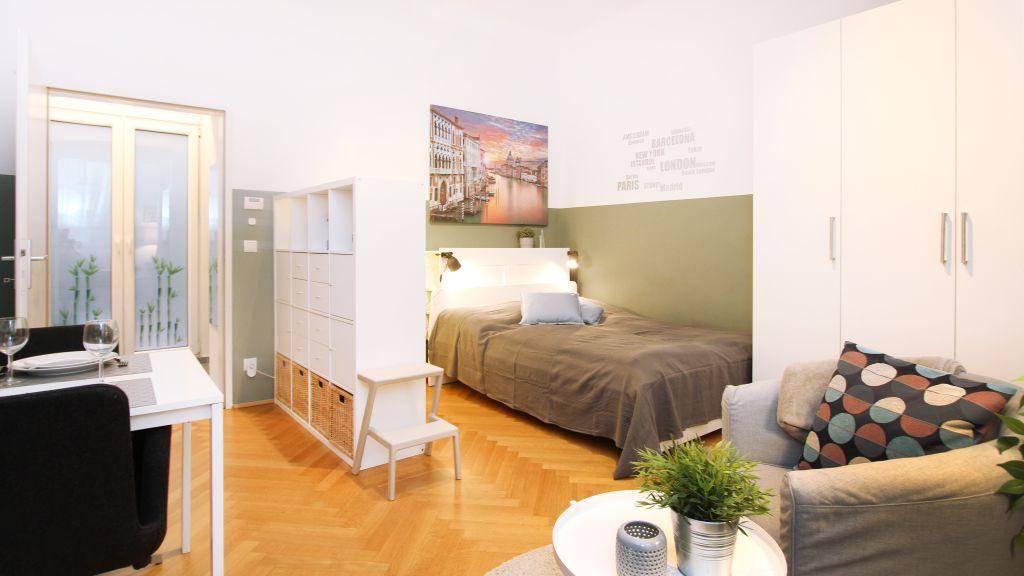 In einem traditionellen Jahrhundertwendehaus befindet sich das entzückende Apartment in der Spengergasse 53. Nach dem Motto „Klein, aber fein“ ist es in freundlichem Ambiente gestaltet. Das Apartment liegt im Erdgeschoß in einer ruhigen Seitengasse im 5. Bezirk nahe dem schönen Margaretenplatz mit direktem Zugang zum eingenen Innenhof (ca. 5 m2).Das Apartment Spengergasse verfügt über ein gemütliches Wohn-Schlafzimmer (ca. 25m²), eine kleine Küche sowie Badezimmer (mit Dusche) und WC. Insgesamt finden zwei Personen Platz.Für einen gemütlichen Aufenthalt stehen Ihnen zur Verfügung: Voll ausgestattete Küche samt Koch- und Essgeschirr, Kühlschrank, Mikrowellengrill, Herdplatten, Kaffeemaschine, Wasserkocher, Toaster Moderne Geräte wie Waschmaschine, Bügeleisen, Staubsauger, Ventilator, CD/DVD Player, Haarfön TV Gerät mit deutsch- und mehrsprachigen Programmen Doppelbett (160×200 cm), Bettwäsche und Handtücher Breitband-Internet (WLAN)Auf Anfrage: Kindersitz und Gitterbett sowie Reinigungsdienst Energieausweis Dieses Gebäude unterliegt nicht den Anforderungen der EnEV.