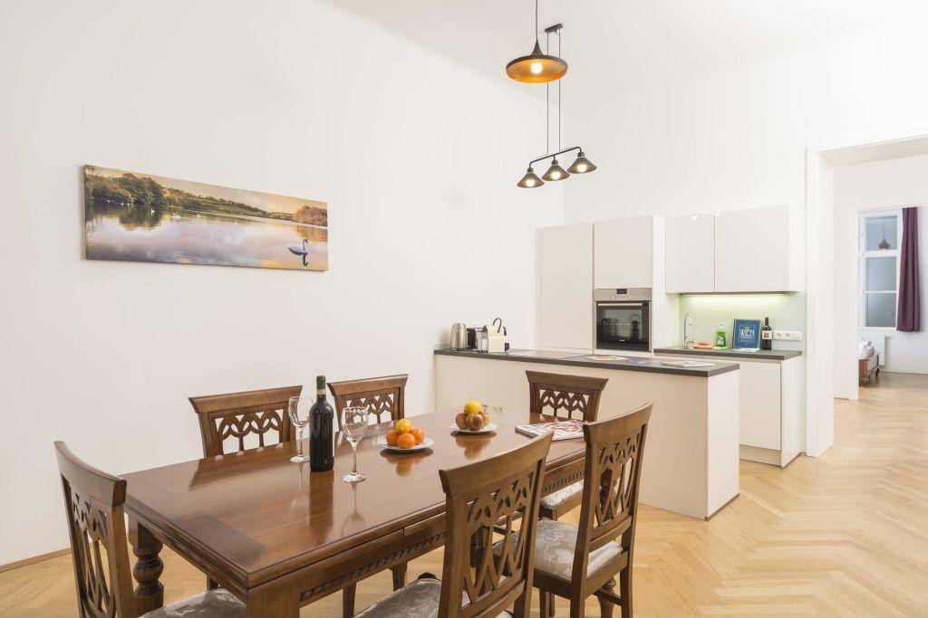 Im Zentrum von Wien wartet auf Sie ein einladendes und modern eingerichtetes Apartment, welches Ihnen die Stimmung und die Atmosphäre der Stadt näherbringt. Zwei Schlafzimmer und eine Auszieh-Couch im Wohnzimmer bieten gemütlich Platz zum schlafen für 6 Personen. Nach einem anstrengenden Tag in der Stadt können Sie sich in dem luxuriös eingerichteten Badezimmer, welches nicht nur eine große Dusche beinhaltet, aber auch eine gemütliche Badewanne, wunderbar entspannen. Das Apartment hat natürlich auch eine voll ausgestattete Küche. Das Wohnzimmer ist sehr gemütlich und kommunikativ eingerichtet und wird Ihren Urlaub in Wien noch genießbarer machen. Energieausweis Dieses Gebäude unterliegt nicht den Anforderungen der EnEV.