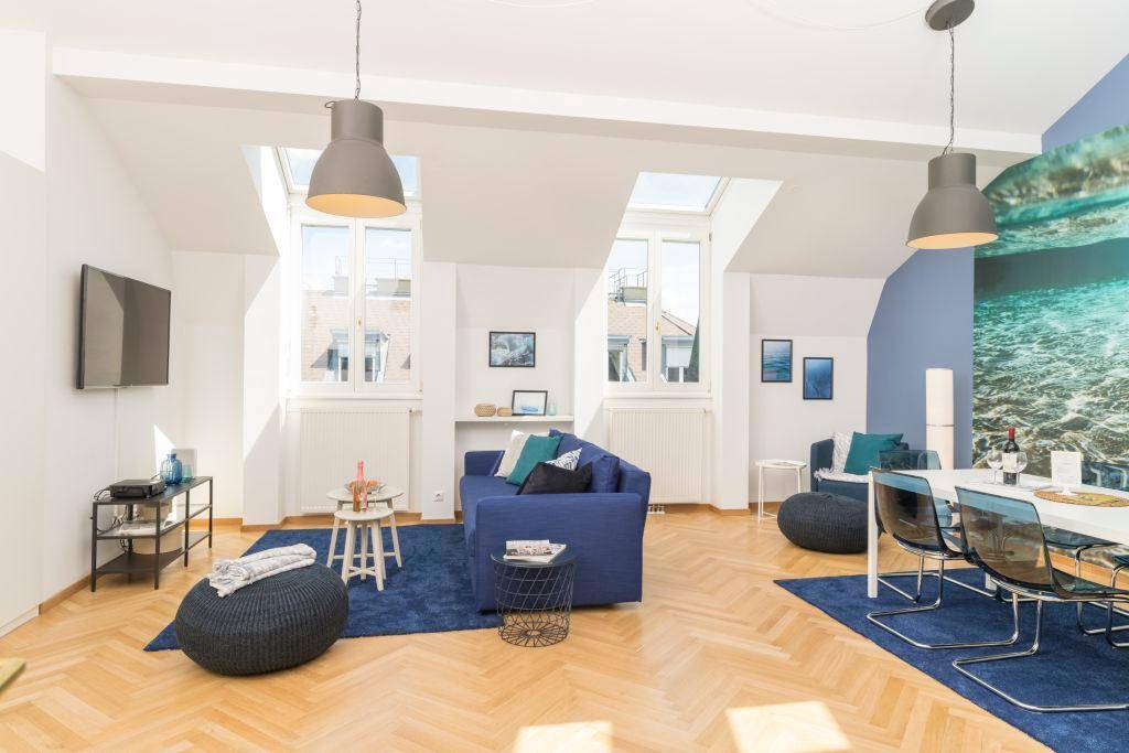 Dieses Lichtdruchflutete und modern eingerichtete Rooftop Apartment liegt direkt im Zentrum Wiens. Die persönlicheren Einflüsse in der Einrichtung machen die Wohnung heimelig und einzigartig. Mit zwei Schlafzimmern und einem Schlafsofa im Wohnzimmer, bietet das Apartment gemütlich Platz für 6 Personen. Die Badezimmer sind mit einer großen Badewanne und zwei Duschen ausgestattet. Diese bieten sich perfekt an, um sich, nach einem langen ereignisreichen Tag in der Stadt, zu erholen. Die Wohnung bieter eine komplett ausgestattete Küche, in der Sie bequem Ihre eigenen Mahlzeiten zubereiten können, die Sie später auf dem Balkon genießen können. WLAN ist in der gesamten Wohnung kostenlos verfügbar. Ein Flughafentransfer kann auf Anfrage arrangiert werden. Energieausweis Dieses Gebäude unterliegt nicht den Anforderungen der EnEV.