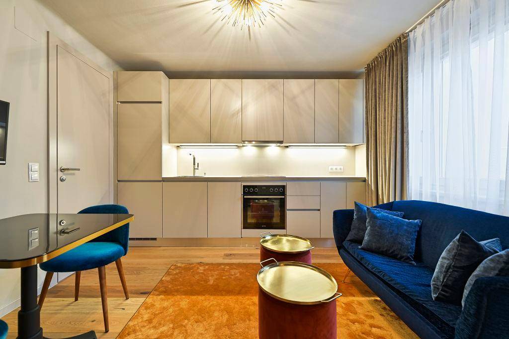 Dieses erstklassige 30 m²-Apartment ist zentral gelegen im 6. Bezirk von Wien in unmittelbarer Nähe des Stadtzentrums nur drei U-Bahnstationen vom weltberühmten Stephansdom entfernt.Das Serviced Apartment ist komplett eingerichtet und besteht aus einem Wohnzimmer mit Küche und Essplatz für zwei Personen, einem Schlafzimmer, einem Badezimmer mit Dusche, einem separaten WC und einem Eingangsbereich.Bei der Ausstattung des Apartments wurde Wert auf hochwertige Materialien, zeitgenössische Möblierung und angenehme Beleuchtung gelegt. Abgerundet wird das Design von Vintage-Sammlerstückern aus den 50er, 60er und 70er Jahren.Sowohl im Wohnzimmer als auch im Schlafzimmer befindet sich ein LED-Fernseher mit Kabel-TV. Ein kostenloser High-Speed-Internetanschluss per WLAN und eine Musikanlage mit Bluetooth sind vorhanden. Die Küche ist voll ausgestattet mit Kühlschrank mit integriertem Gefrierfach, Backofen, Kochfeld, Geschirrspülmaschine, Nespresso-Kaffeemaschine, Toaster, Wasserkocher und allen gängigen Küchenutensilien.Das Apartment bietet Platz für zwei Personen. Das Bett ist ein handegmachtes Boxspringbett mit unterschiedlicher Matratzenhärte. Das Apartment ist in Richtung des stillen Innenhofs gelegen. Die Barnabitengasse ist eine ruhige Nebenstraße ohne Kfz-Verkehr und grenzt direkt an die weitläufige Fußgängerzone Mariahilfer Straße.Frische Handtücher, Duschtücher, Duschvorleger und Bettwäsche sind vorhanden.Die Wohnung ist eine Nichtraucher-Wohnung.