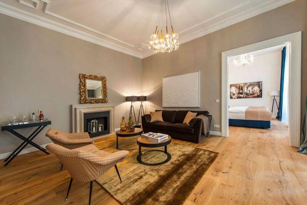 Dieses traumhafte 72 m²-Apartment befindet sich mitten im 6. Bezirk in einem Wiener Altbaugebäude. Es ist stilvoll und komplett eingerichtet und besticht durch hohe Räume, Stuckdecken und Parkettböden. Das Apartment besteht aus einem großzügigen Wohnzimmer, einem Schlafzimmer mit angeschlossenem Bad und Badewanne, einem separaten WC, einer voll ausgestatteten Küche mit Essbereich für vier Personen und einem Eingangsbereich.Besonders viel Wert wurde bei der Einrichtung auf hochwertige Möbel mit auserlesenen Materialien gelegt. Das Design der Wohnung ist zeitgenössisch und wird durch Designelemente aus den 1950er und 1970er Jahren ergänzt. Ein kostenfreier High-Speed-Internetanschluss per WLAN und LED-Fernseher mit Kabel-TV in Wohn- und Schlafzimmer sind vorhanden.Frische Handtücher, Duschtücher, Duschvorleger und Bettwäsche sind vorhanden. Ebenso sind Reinigungsgeräte wie Staubsauger und Mop vorhanden. Reinigungsservice und Bettenservice sind auf Wunsch gegen Aufpreis verfügbar.Die Wohnung ist eine Nichtraucher-Wohnung.Das Haus verfügt über einen Aufzug, eine Gegensprechanlage und einen leicht erreichbaren Müllraum.