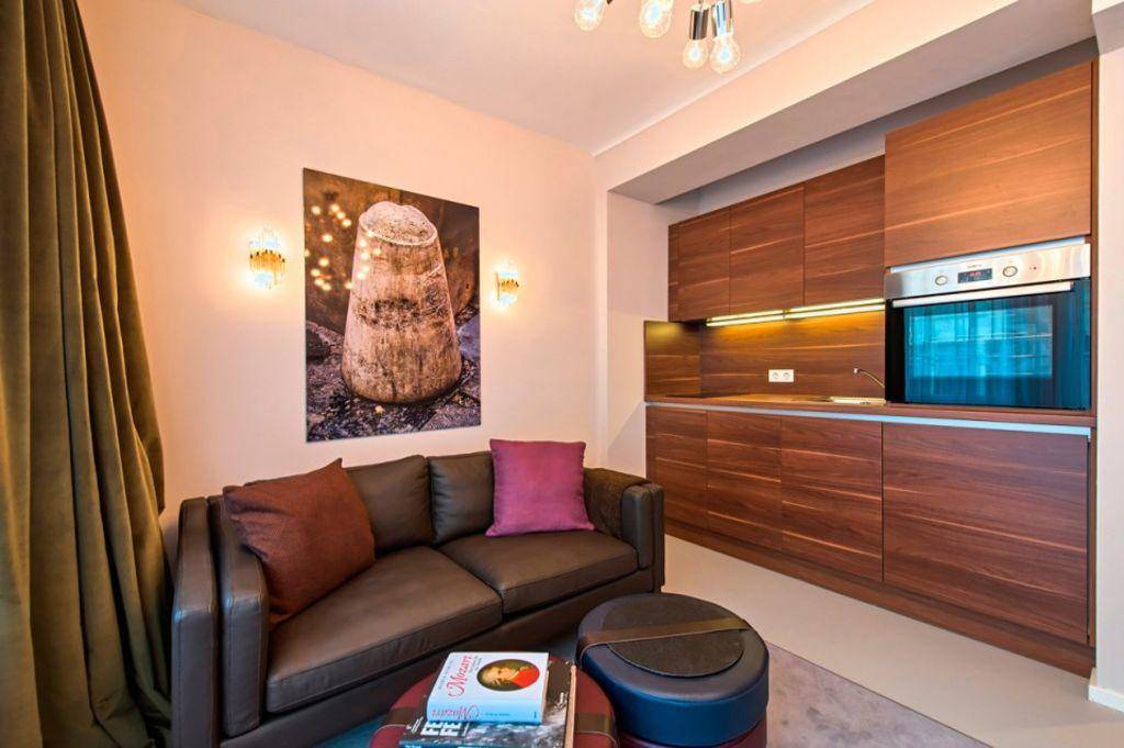 Das Serviced Apartment ist komplett eingerichtet und besteht aus einem Wohnzimmer mit Küche und Essplatz für zwei Personen, einem Schlafzimmer, einem Badezimmer mit bodengleicher Dusche und WC und einem Eingangsbereich. Eine 21 m² gr0ße Terrasse mit Sitzmöbeln und Begrünung rundet das Wohnerlebnis perfekt ab. Außerdem ist das Apartment mit einer Klimaanlage ausgestattet.Bei der Ausstattung des Apartments wurde Wert auf hochwertige Materialien, zeitgenössische Möblierung und angenehme Beleuchtung gelegt. Abgerundet wird das Design von Vintage-Sammlerstückern aus den 50er, 60er und 70er Jahren. Das gesamte Haus und das Apartment sind mit zeitgenössischer österreichischer Kunst gestaltet.Sowohl im Wohnzimmer als auch im Schlafzimmer befindet sich ein LED-Fernseher mit Kabel-TV. Ein kostenloser High-Speed-Internetanschluss per WLAN und eine Musikanlage mit Bluetooth sind vorhanden. Die Küche ist voll ausgestattet mit Kühlschrank mit integriertem Gefrierfach, Backofen, Kochfeld, Geschirrspülmaschine, Nespresso-Kaffeemaschine, Toaster, Wasserkocher und allen gängigen Küchenutensilien. Das Apartment hat einen Schreibtisch.Das Apartment bietet Platz für zwei Personen. Das Bett ist ein 180 x 200 cm großes Boxspringbett mit unterschiedlicher Matratzenhärte.Frische Handtücher, Duschtücher, Duschvorleger und Bettwäsche sind vorhanden.Die Wohnung ist eine Nichtraucher-Wohnung. Auf der Terrasse ist das Rauchen erlaubt.