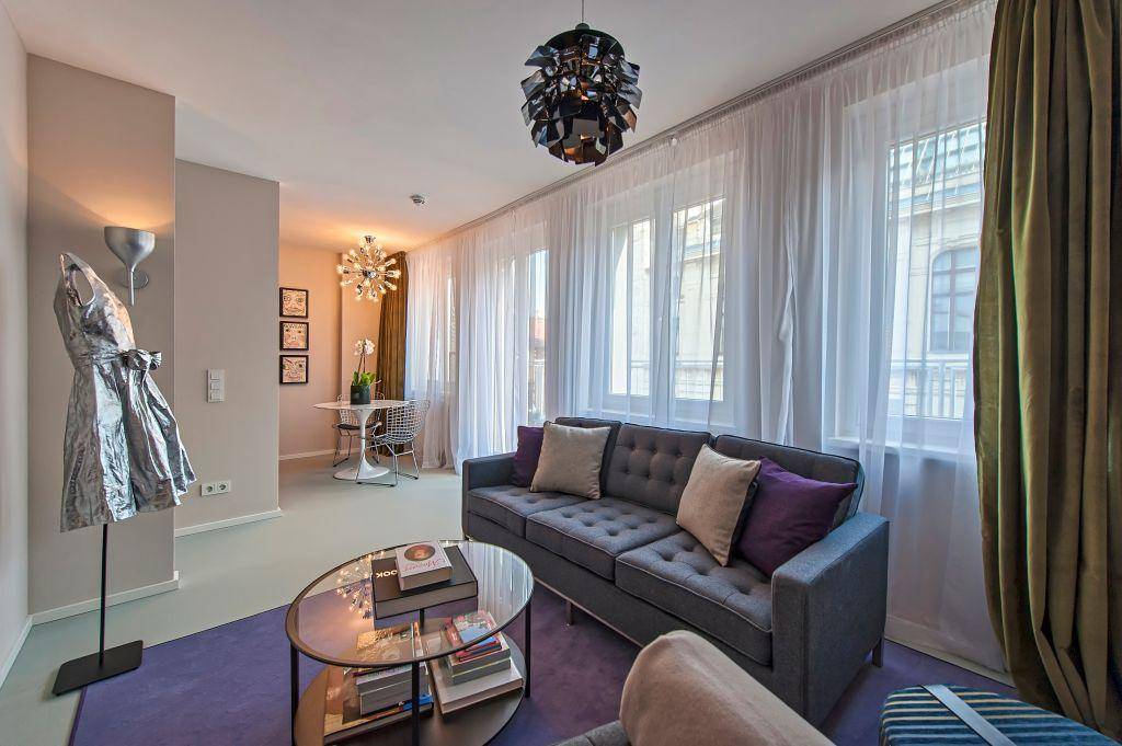Das Serviced Apartment ist komplett eingerichtet und besteht aus einem Wohnzimmer mit Küche und Essplatz für zwei Personen, einem Schlafzimmer, einem Badezimmer mit bodengleicher Dusche, einem separaten WC und einem Eingangsbereich. Eine 21 m² gr0ße Terrasse mit Sitzmöbeln und Begrünung rundet das Wohnerlebnis perfekt ab. Außerdem ist das Apartment mit einer Klimaanlage ausgestattet.Bei der Ausstattung des Apartments wurde Wert auf hochwertige Materialien, zeitgenössische Möblierung und angenehme Beleuchtung gelegt. Abgerundet wird das Design von Vintage-Sammlerstückern aus den 50er, 60er und 70er Jahren. Das gesamte Haus und das Apartment sind mit zeitgenössischer österreichischer Kunst gestaltet.Sowohl im Wohnzimmer als auch im Schlafzimmer befindet sich ein LED-Fernseher mit Kabel-TV. Ein kostenloser High-Speed-Internetanschluss per WLAN und eine Musikanlage mit Bluetooth sind vorhanden. Die Küche ist voll ausgestattet mit Kühlschrank mit integriertem Gefrierfach, Backofen, Kochfeld, Geschirrspülmaschine, Nespresso-Kaffeemaschine, Toaster, Wasserkocher und allen gängigen Küchenutensilien. Das Apartment hat einen Schreibtisch.Das Apartment bietet Platz für zwei Personen. Das Bett ist ein 180 x 200 cm großes Boxspringbett mit unterschiedlicher Matratzenhärte. Das Schlafzimmer ist in Richtung des stillen Innenhofs gelegen.Frische Handtücher, Duschtücher, Duschvorleger und Bettwäsche sind vorhanden.Die Wohnung ist eine Nichtraucher-Wohnung.