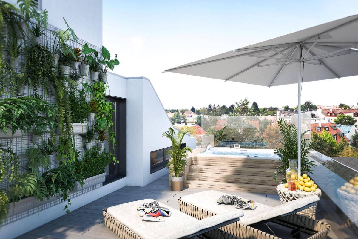 Individuell und exklusiv wohnen in Döbling! Die attraktive Liegenschaft mit einer Grundstücksgröße von ca. 588 m² erzielt bei Neubebauung mit einem Mehrparteienhaus eine Gesamtnutzfläche von ca. 712 m², davon ca. 407 m² reine Wohnfläche. Die sehr durchdachte Planung sieht vier Wohnungen zwischen 67 und 141 m² vor, alle mit Terrasse/Balkon. Für die Wohnungen Top 1-3 sind zusätzliche kleine Privatgärten geplant, Top 4 verfügt über eine Dachterrasse. Im Erdgeschoß stehen vier Garagenplätze und Kellerabteile zur Verfügung. Sämtliche Wohnungen sind barrierefrei zugänglich, der Lift fährt bis zur Dachterrasse. Die moderne Architektur zeichnet sich insbesondere durch schlichte Eleganz in der Außenansicht und raumhohe französische Fenster aus.