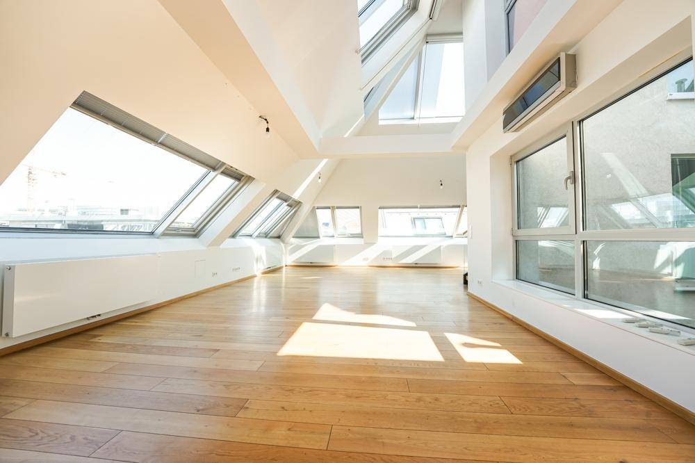Lichterfülltes City Penthouse im Herzen Wiens mit großzügiger Terrassenfläche Die Dachgeschosswohnung teilt sich auf 2 Stockwerke auf. Insgesamt verfügt sie über 259 m² Wohnfläche und 45 m² Terrassenfläche und gliedert sich wie folgt: Vorraum, Gäste-WC, großzügige Wohnküche im Loft Stil mit zusätzlichem Wirtschaftsraum, 1 Schlafzimmer im unteren Stockwerk mit Badezimmer und WC sowie einem Schrankraum und Zugang einer der 3 Terrassen. Das Obergeschoß teilt sich in jeweils 2 weitere Schlaf oder Arbeitszimmer auf die wiederum über ein eigenes Badezimmer sowie jeweils eine Terrasse verfügen. Die Wohnung verfügt über eine moderne Küche und ist mit einem hellem Parkettboden ausgestattet sowie, Klimaanlagen in allen größeren Räumen.